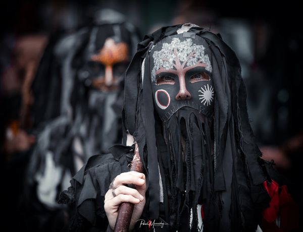Bedlam Morris style. Through our masked dances we bring to life the ancient myths and legends of Albion - stories handed down through the ages, tales from the beginnings of time, from the dark ages of Britain.